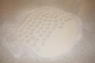 I spent a very long time creating all the wee decorations for this cake, but I had so much fun making it that it didn't seem like an arduous task. I know that traditionally The Very Hungry Caterpillar is very bright colours but I wanted to make it a little more feminine so I used some pastel colours. I used a very small round cutter, which actually came from one of my number cutter sets, to cut the coloured circles which I used as a border for the bottom of the cake.